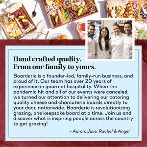 Boarderie boards are made with high quality acacia wood and can be saved and reused for repeat grazing!
