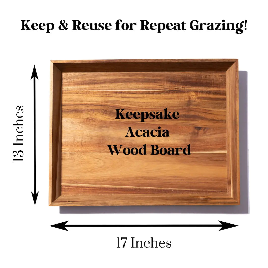Boarderie boards are made with high quality acacia wood and can be saved and reused for repeat grazing!
